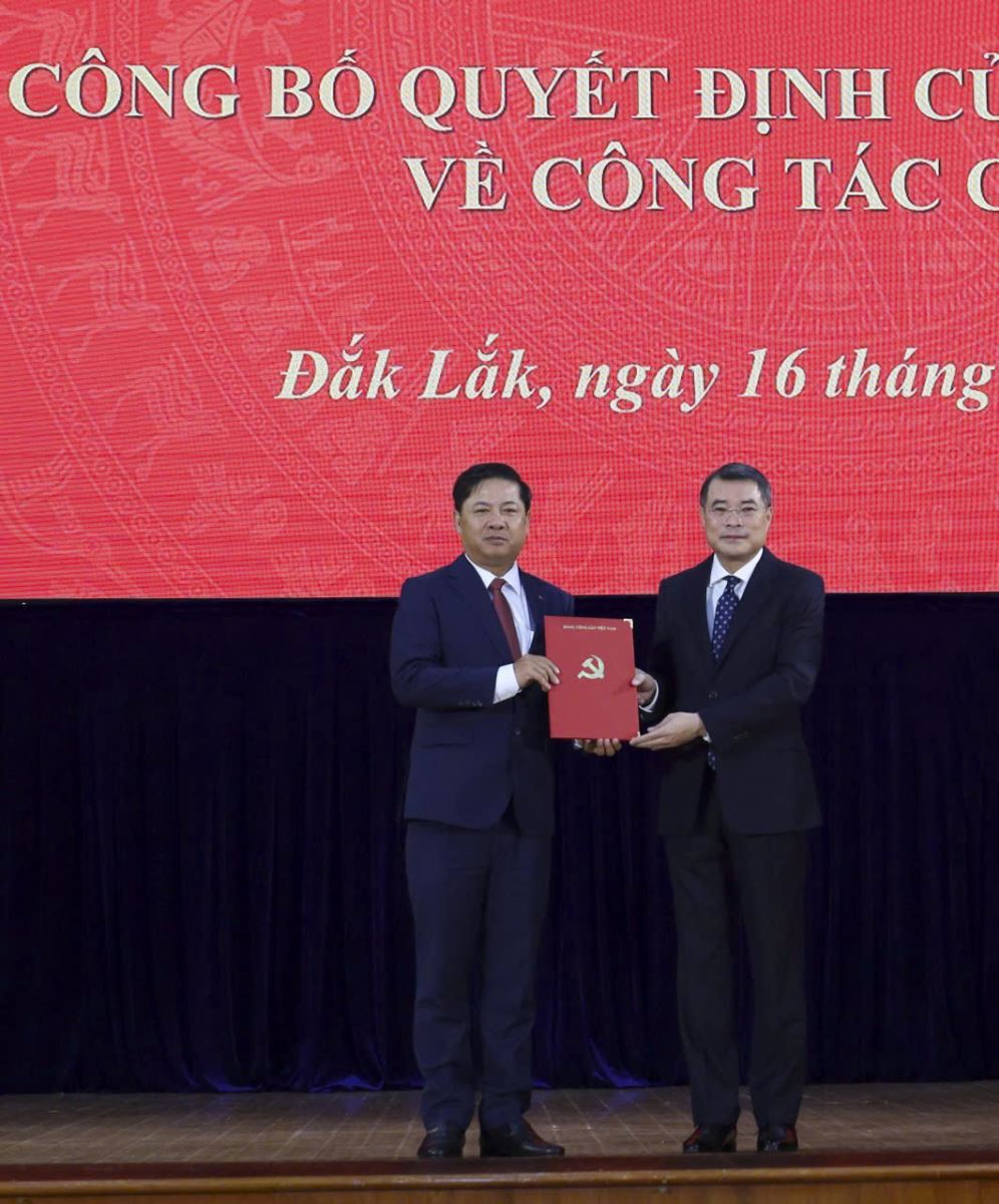 MT&XH - Ngày 16/10, tại Tỉnh ủy Đắk Lắk, ông Lê Minh Hưng, Ủy viên Bộ Chính trị, Bí thư Trung ương Đảng, Trưởng Ban Tổ chức Trung ương, đã công bố các quyết định của Bộ Chính trị về việc điều động và chỉ định ông Lương Nguyễn Minh Triết – Bí thư Thành ủy Đà Nẵng, giữ chức Bí thư Tỉnh ủy Đắk Lắk, nhiệm kỳ 2025–2030.