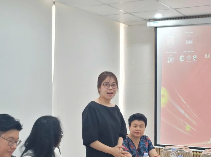 Bà Nguyễn Diệu Linh – Giám đốc điều hành TMV Vũ Quang đại diện nhà tài trợ phát biểu tại buổi lễ bốc thăm.