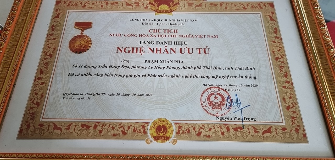 Danh hiệu nghệ nhân ưu tú được nhà nước trao tặng cho ông Phạm Xuân Pha
