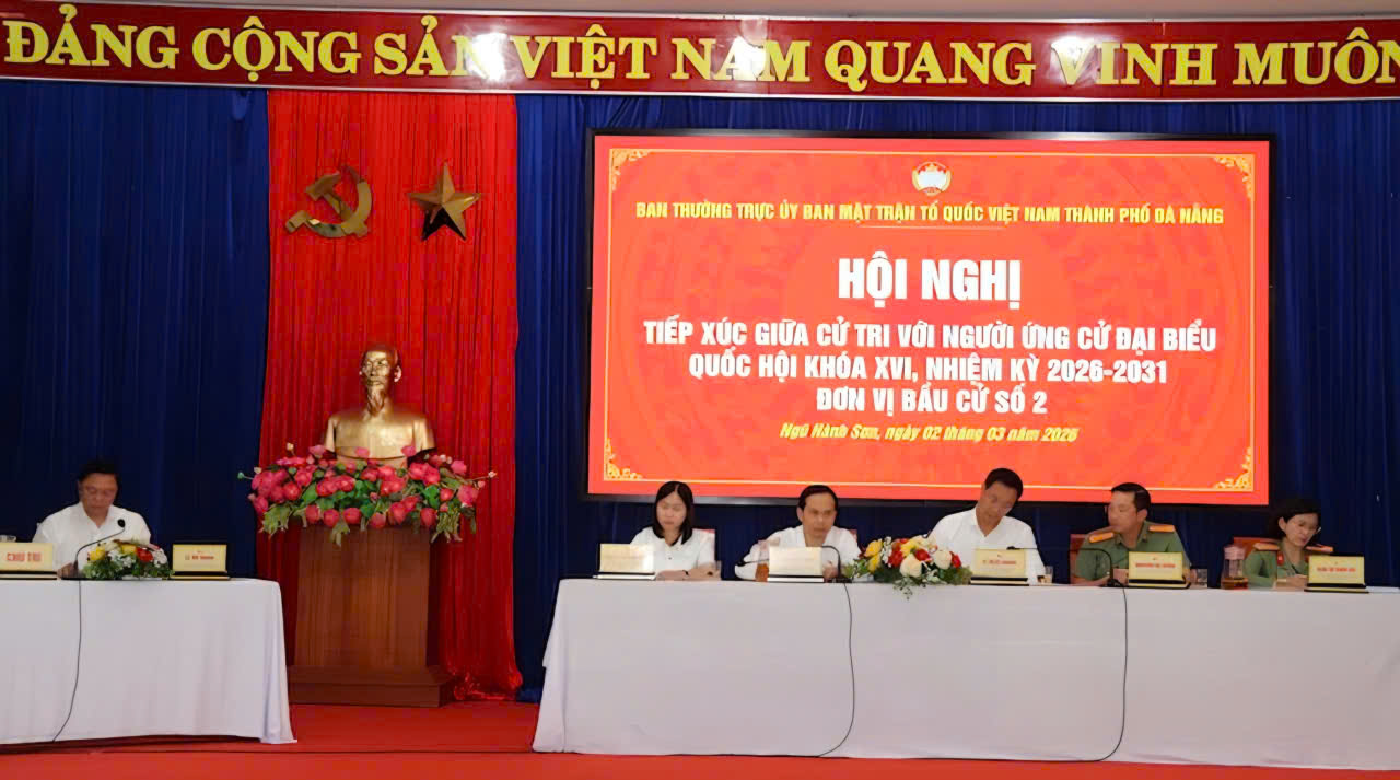 Các thành viên Ủy ban MTTQ Việt Nam thành phố Đà Nẵng tại buổi Hội nghị tiếp xúc giữa cử tri với người ứng cử đại biểu Quốc hội (ĐBQH) khóa XVI, nhiệm kỳ 2026 - 2031. (Ảnh: Nguyễn Linh)
