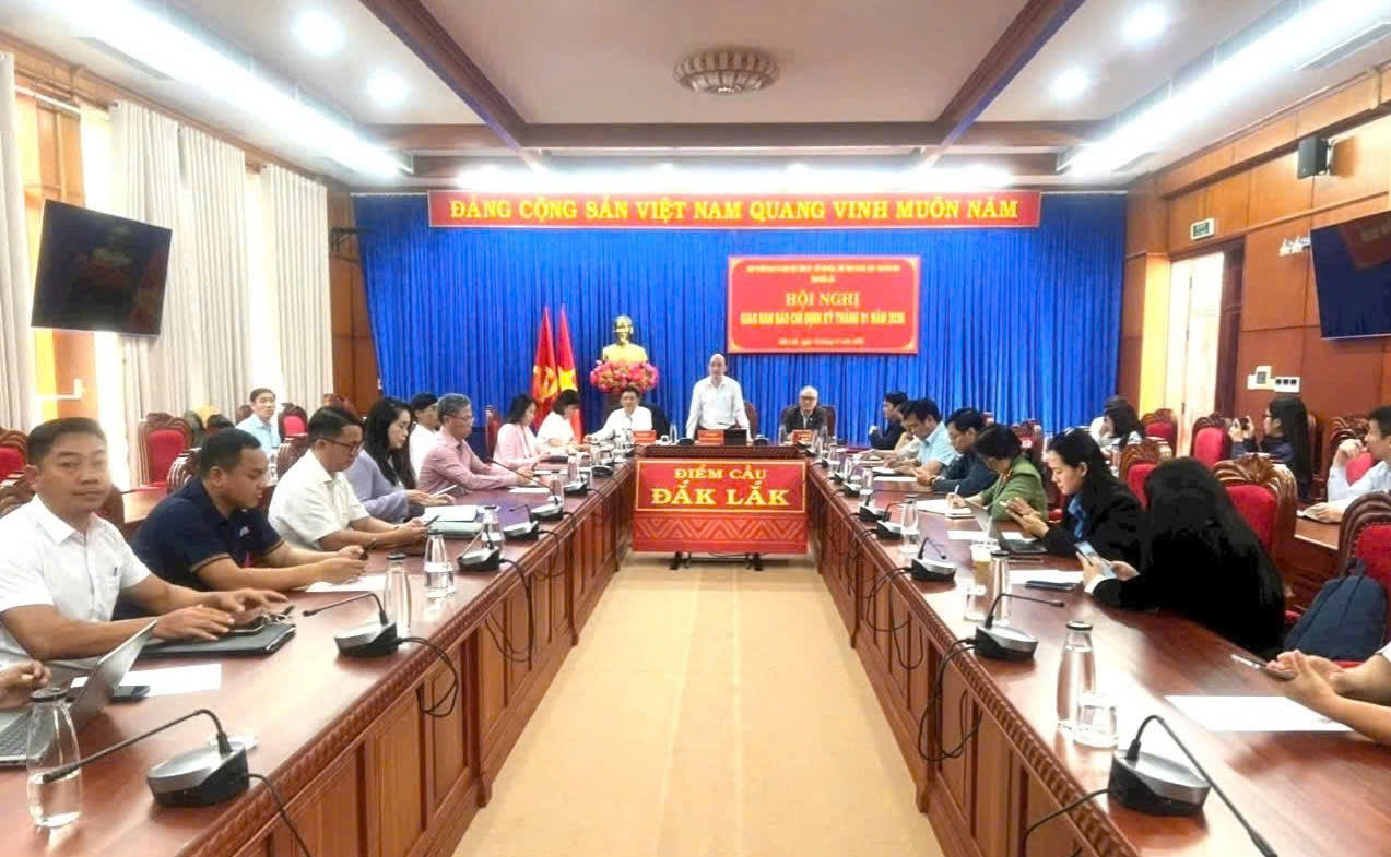 MT&XH - Chiều 15/01, Ban Tuyên giáo và Dân vận Tỉnh ủy Đắk Lắk chủ trì, phối hợp với Sở Văn hóa, Thể thao và Du lịch, Hội Nhà báo tỉnh tổ chức Hội nghị giao ban báo chí định kỳ tháng 01/2026. Hội nghị được tổ chức trực tuyến tại Phòng họp trực tuyến, Trụ sở Tỉnh ủy nhằm đánh giá công tác báo chí tháng 12/2025 và định hướng tuyên truyền trọng tâm trong tháng 01/2026.