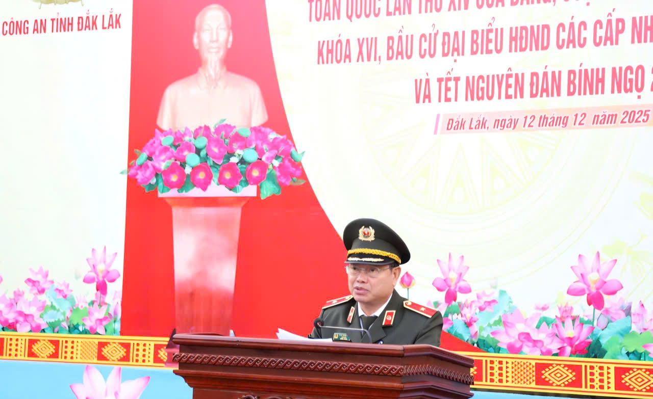 MT&XH - Sáng ngày 12/12, Công an tỉnh Đắk Lắk đã tổ chức Lễ ra quân cao điểm tấn công, trấn áp tội phạm, bảo đảm an ninh trật tự (ANTT) phục vụ Đại hội đại biểu toàn quốc lần thứ XIV của Đảng, Cuộc bầu cử đại biểu Quốc hội khóa XVI, bầu cử đại biểu HĐND các cấp nhiệm kỳ 2026 - 2031 và Tết Nguyên đán Bính Ngọ 2026.