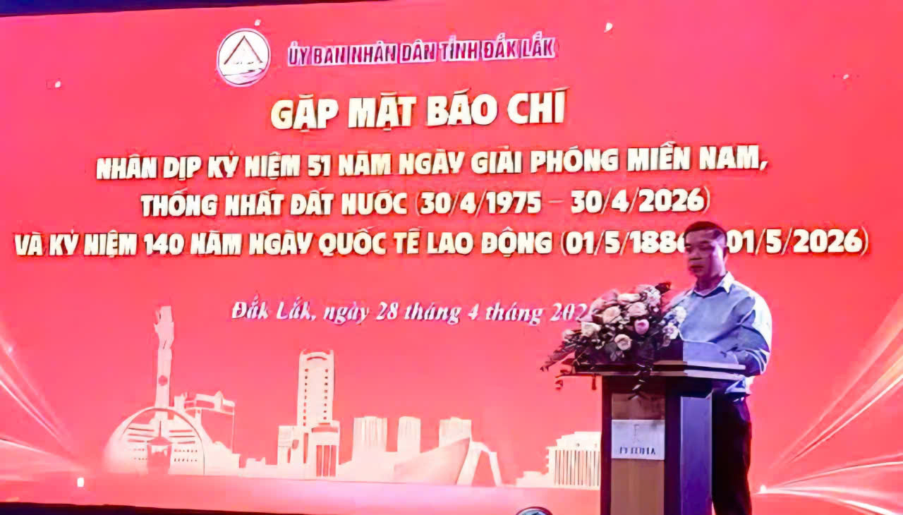 Nhân dịp kỷ niệm 51 năm Ngày Giải phóng miền Nam (30/4/1975 – 30/04/2026) và 140 năm Ngày Quốc tế Lao động (1/5), UBND tỉnh Đắk Lắk đã tổ chức buổi gặp mặt các cơ quan báo chí, thể hiện sự quan tâm và trân trọng đối với đội ngũ những người làm báo luôn đồng hành cùng sự phát triển của địa phương.