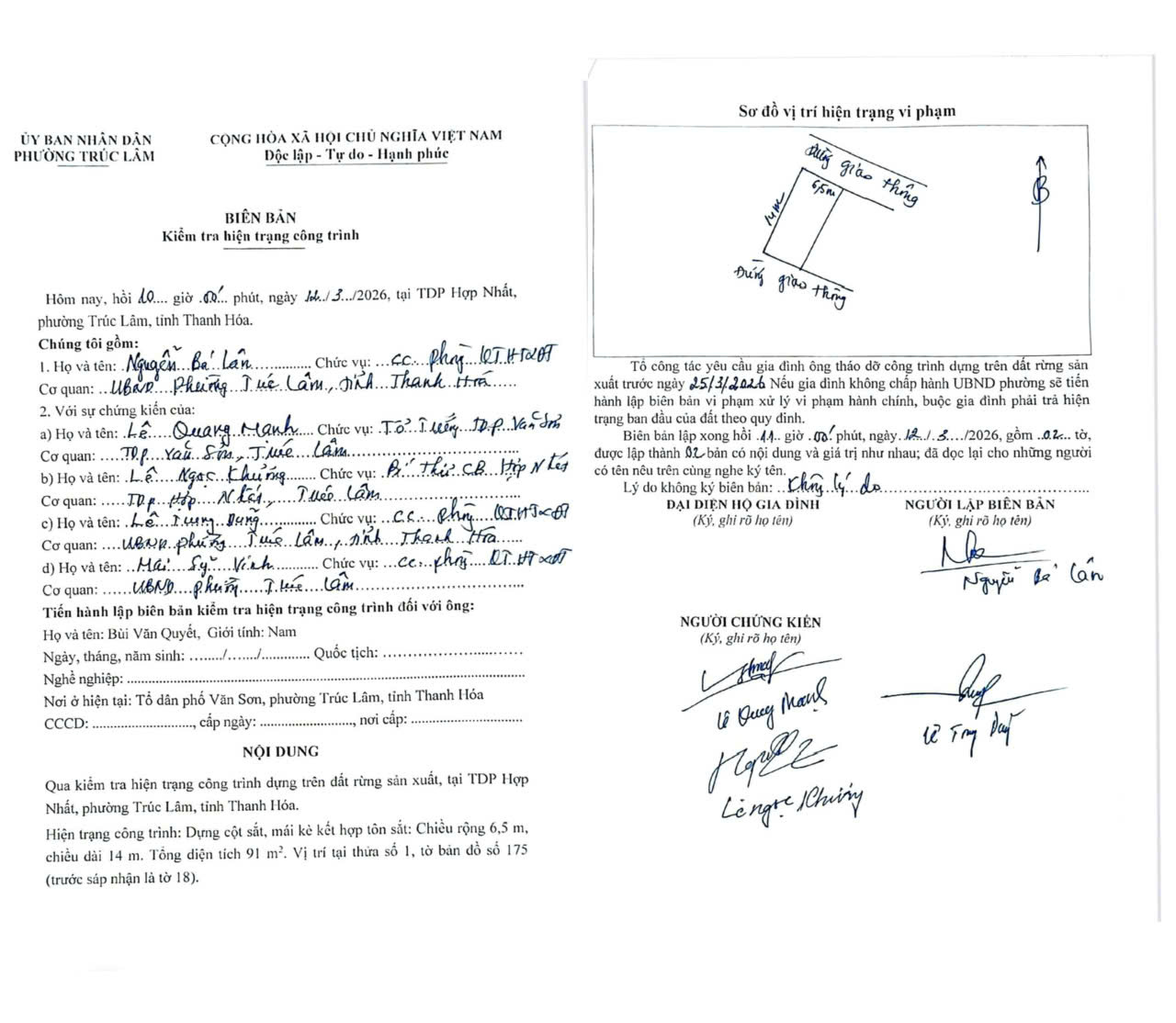 Biên bản kiểm tra hiện trạng công trình của UBND phường Trúc Lâm