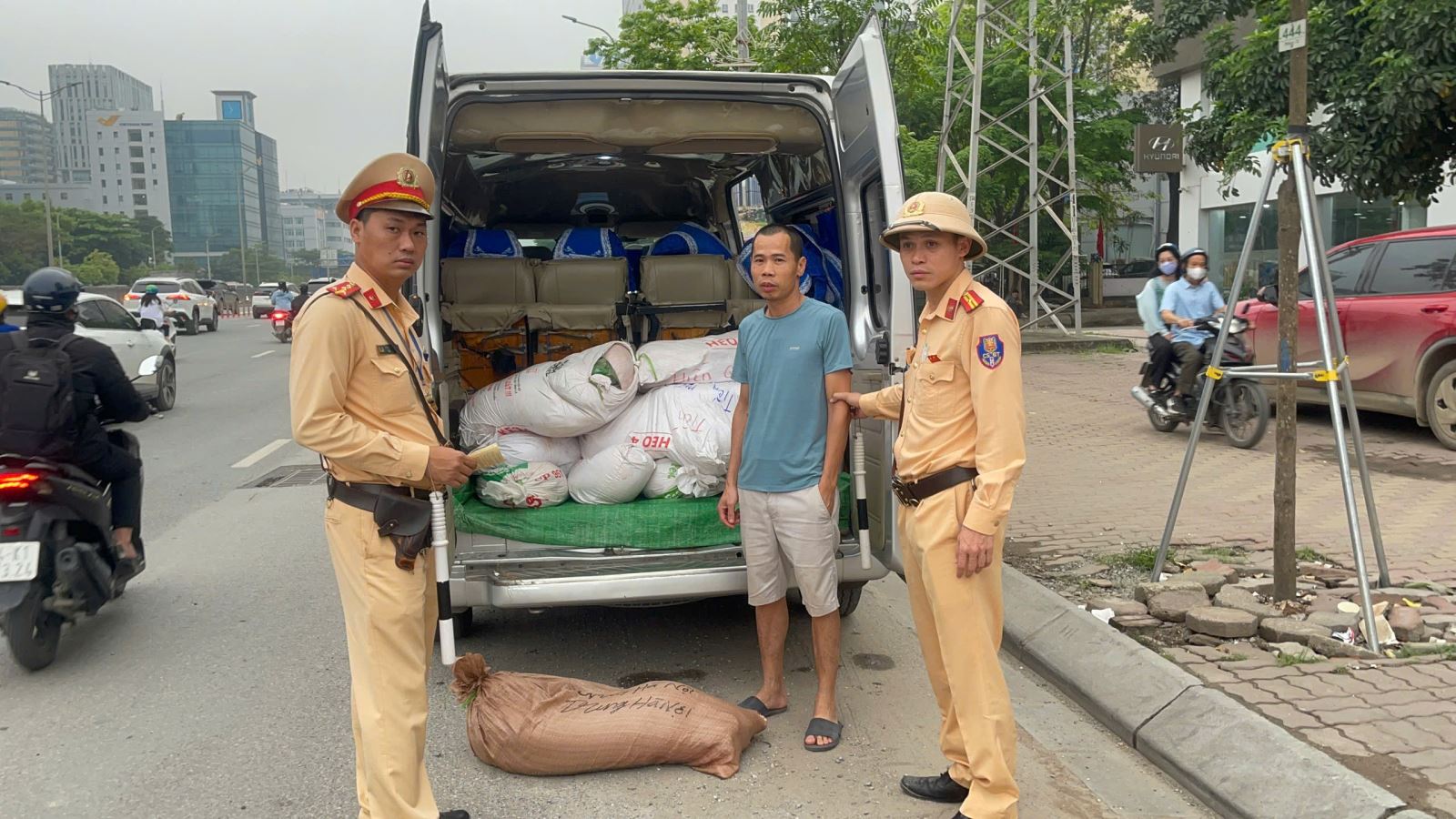 Sáng ngày 31/3, sau khi nhận được tin báo từ phóng viên, Thiếu tá Lê Văn Đông – Tổ tuần tra kiểm soát cùng cán bộ đội CSGT đường bộ số 6 – CA thành phố Hà Nội đã dừng xe, kiểm tra và phát hiện 01 xe 16 chỗ BKS 98H – 065.07 do Thân Nhân Nam và và Đỗ Quang Linh đang vận chuyển 10 bao tải thịt lợn không có nguồn gốc để tiếp tục phối hợp với các cơ quan chức năng điều tra, làm rõ. Lái xe khai nhận số thịt này được thuê vận chuyển từ địa phận xã Hiệp Hòa, tỉnh Bắc Ninh lên một số điểm tại Hà Nội, ngoài ra không có giấy tờ gì thêm.