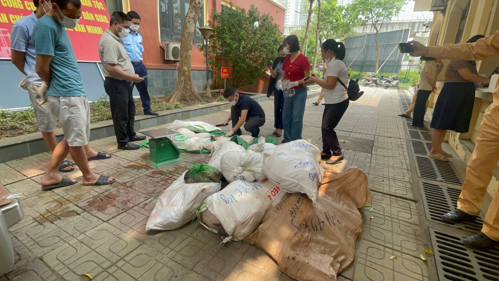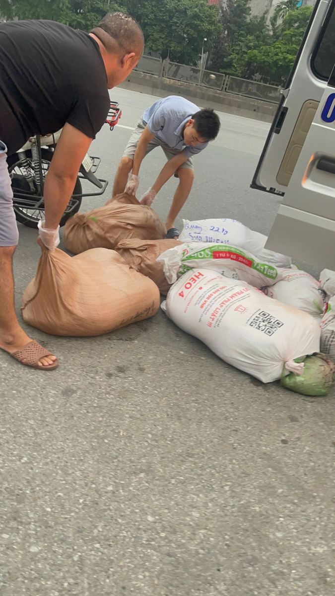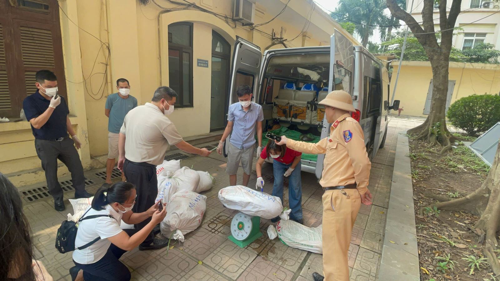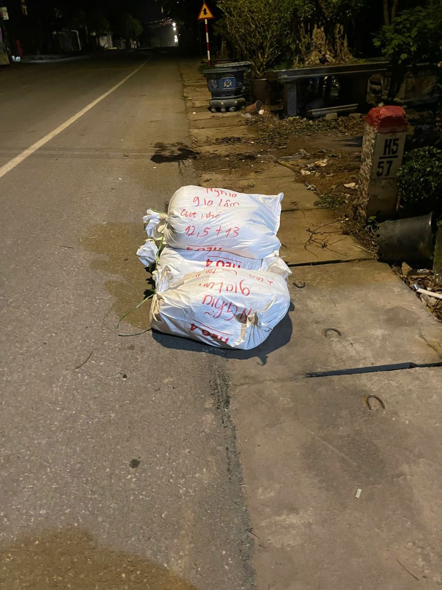 Trước đó, trong quá trình theo dõi, tại vòng xuyến nút giao Mê Linh (đối diện Mê Linh Plaza) một số lượng lớn bao tải thịt lợn đã được giao.