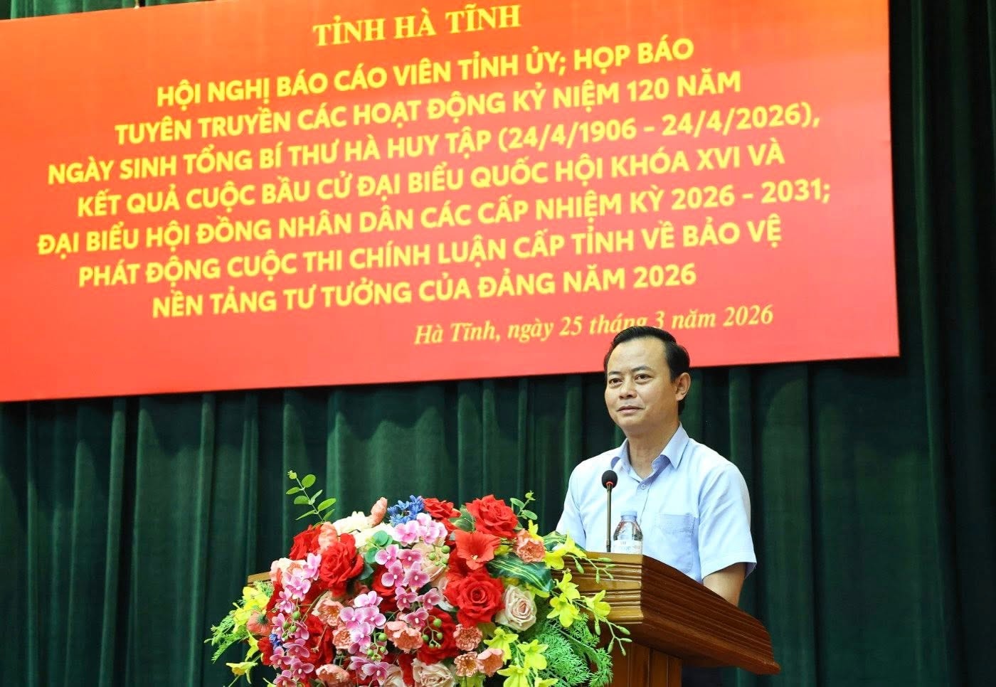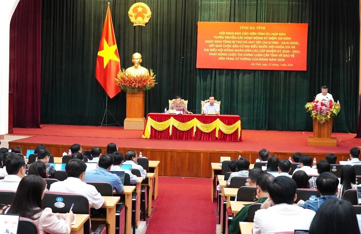 Sáng 25/3, Ban Tuyên giáo và Dân vận Tỉnh ủy phối hợp Sở Văn hóa - Thể thao và Du lịch Hà Tĩnh tổ chức họp báo tuyên truyền các hoạt động kỷ niệm (24/4/1906 - 24/4/2026); đồng thời thông tin kết quả bầu cử đại biểu Quốc hội khóa XVI, đại biểu HĐND các cấp nhiệm kỳ 2026 - 2031 và phát động cuộc thi chính luận cấp tỉnh năm 2026 về bảo vệ nền tảng tư tưởng của Đảng.