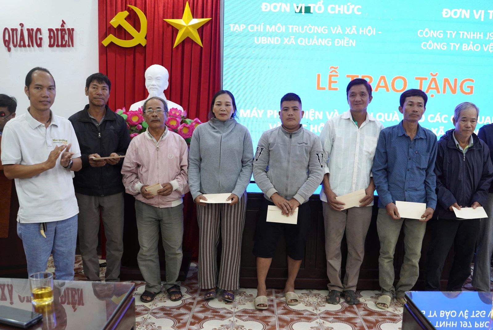 Đoàn công tác Tạp chí Môi trường và Xã hội cùng các nhà tài trợ, mạnh thường quân đã trực tiếp đến thăm và tặng đã trao tặng 20 máy phát điện cho bà con