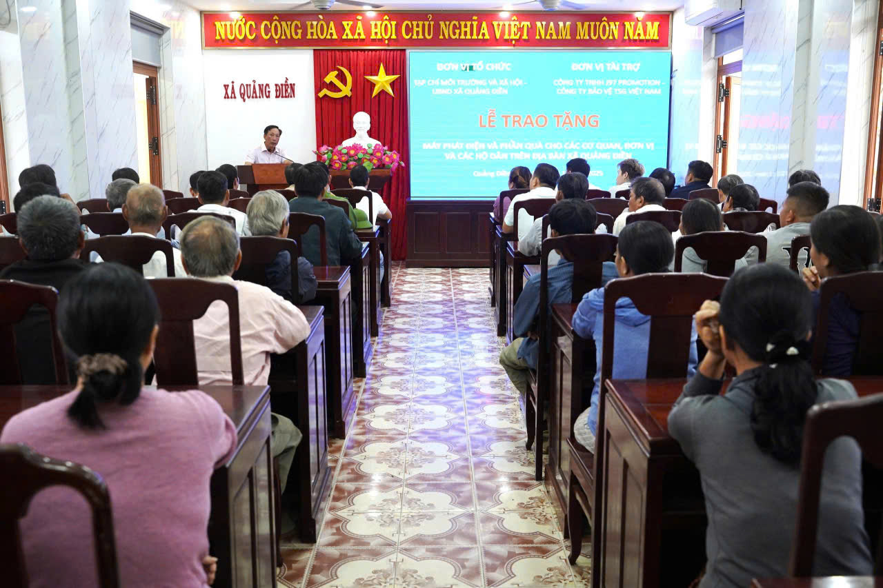 Buổi trao quà diễn ra trong không khí ấm áp, nghĩa tình, với sự tham dự của ông Nguyễn Ánh Cầu – Phó Bí thư, Chủ tịch UBND xã Quảng Điền, cùng lãnh đạo các ban, ngành, đoàn thể địa phương và đông đảo bà con nhân dân trong xã.