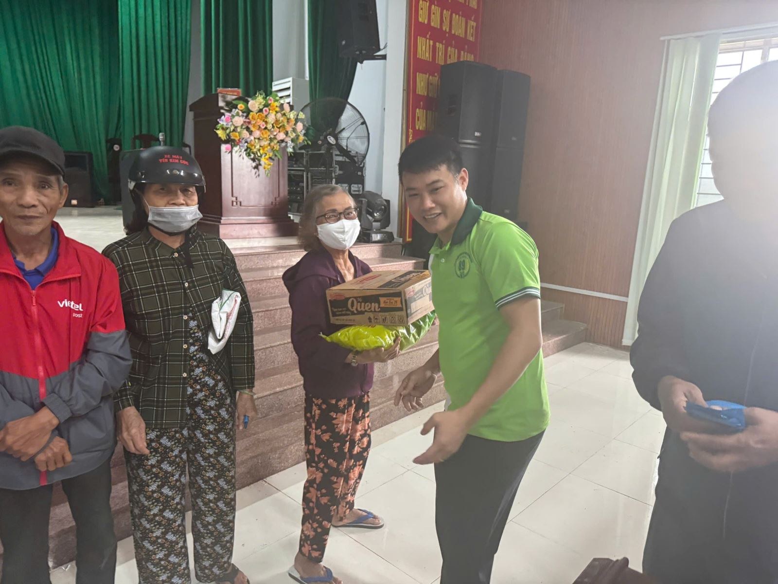 Hình ảnh đại diện các công ty, mạnh thường quân trao quà cho bà con nhân dân 2 xã chịu ảnh hưởng nặng nề nhất của thiên tai, lũ lụt.