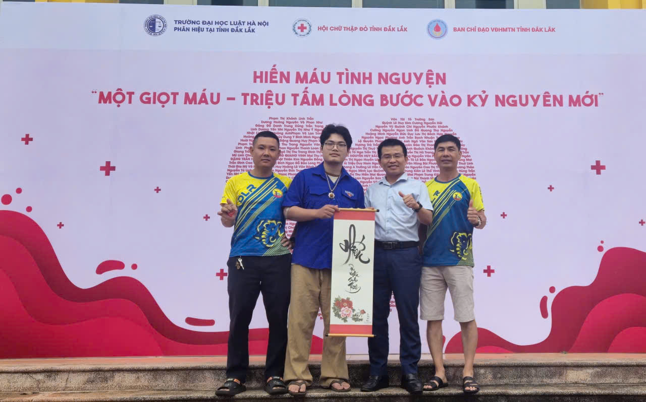 MT&XH - Ngày 26/10, chương trình hiến máu tình nguyện mang tên “Một giọt máu - Triệu tấm lòng bước vào kỷ nguyên mới” đã được tổ chức tại Hội trường Câu lạc bộ Trường Đại học Luật Hà Nội, Phân hiệu tại tỉnh Đắk Lắk. Sự kiện này là sự kết hợp đầy ý nghĩa giữa Phân hiệu trường, Hội Chữ thập đỏ và Trung tâm Huyết học Truyền máu tỉnh Đắk Lắk, nhằm kêu gọi cộng đồng chung tay hiến máu cứu người.