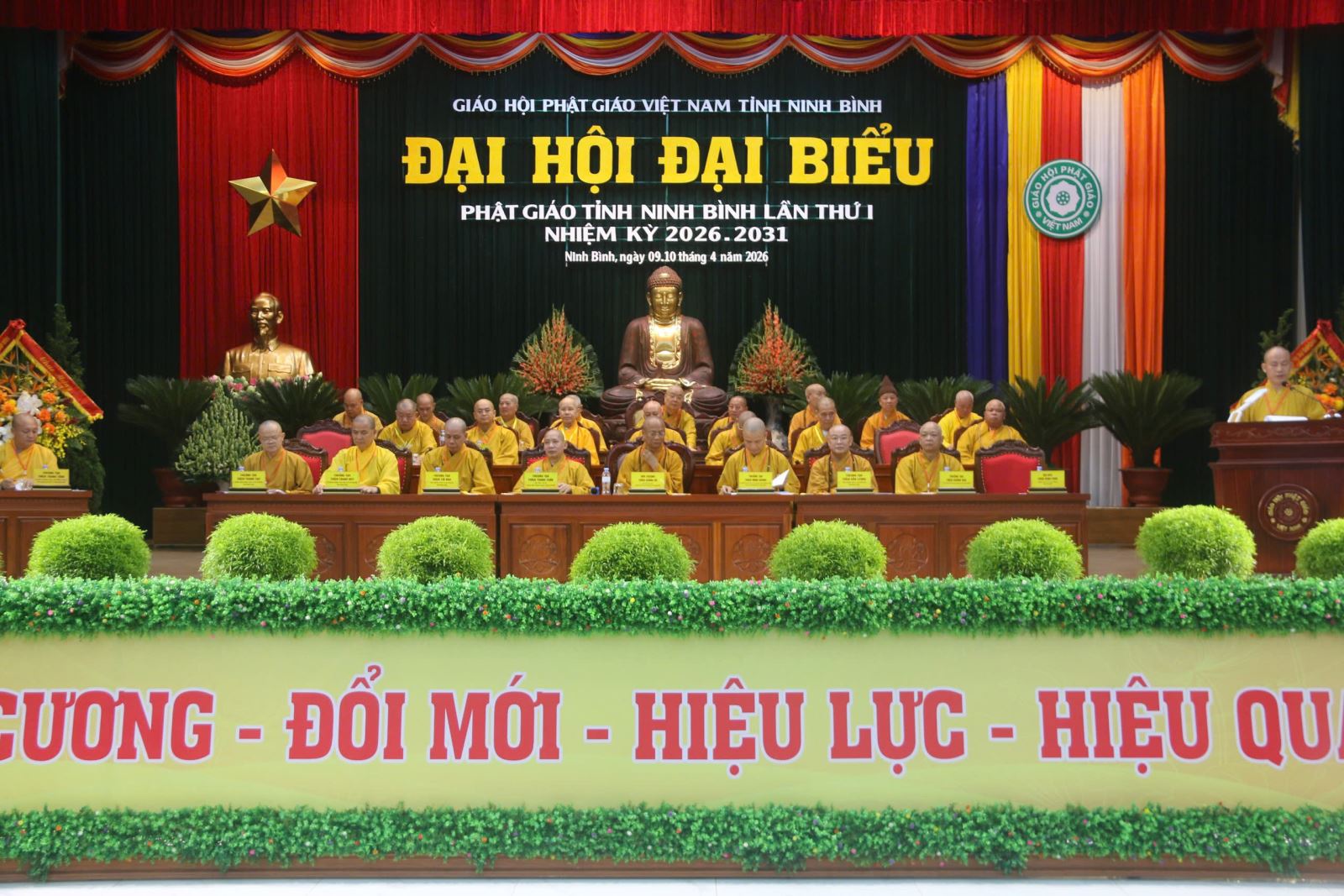 Trong hai ngày vừa qua (9-10/4), tại Thiền viện Trúc Lâm Thiên Trường, phường Nam Định, Ban Trị sự Giáo hội Phật giáo Việt Nam tỉnh Ninh Bình đã tổ chức thành công Đại hội đại biểu lần thứ I, nhiệm kỳ 2026-2031 với chủ đề “Kỷ cương - Đổi mới - Hiệu lực - Hiệu quả”. Đây là sự kiện chính trị trọng đại của Phật giáo có ý nghĩa to lớn đối với tăng đoàn, tăng ni, tín đồ Phật tử trong tỉnh, đánh dấu bước phát triển mới trên con đường “Hoằng dương chính pháp, lợi lạc quần sanh, phụng sự đạo pháp và dân tộc” sau khi sáp nhập ba tỉnh: Nam Định, Hà Nam thành tỉnh Ninh Bình.