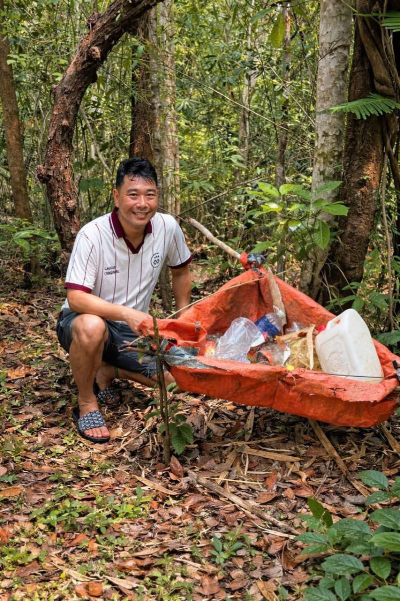 Trong chuyến đi bộ dã ngoại, đoàn tham quan đã vô cùng ấn tượng trước ý thức bảo vệ môi trường của các chiến sĩ. Những người lính trẻ không ngần ngại, miệt mài thu gom từng chai nhựa, túi ni-lông bị bỏ lại giữa rừng sâu. Hình ảnh những chiếc túi rác được các anh tạm treo trên cành cây để tập kết và mang về xử lý sau mỗi buổi tuần tra là minh chứng sống động nhất cho tình yêu thiên nhiên và trách nhiệm với môi trường sống.