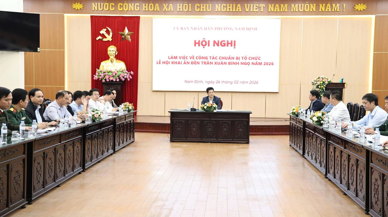 MTXH - Chiều ngày 26/2 (tức mùng 10 tháng Giêng năm Bính Ngọ), tại trụ sở Đảng ủy, HĐND, UBND phường Nam Định, UBND tỉnh Ninh Bình tổ chức buổi làm việc về công tác chuẩn bị tổ chức Lễ hội Khai ấn Đền Trần Xuân, Bính Ngọ năm 2026. Dự và chỉ đạo hội nghị có đồng chí Trần Anh Dũng, Ủy viên Ban Thường vụ Tỉnh ủy, Phó Chủ tịch UBND tỉnh.