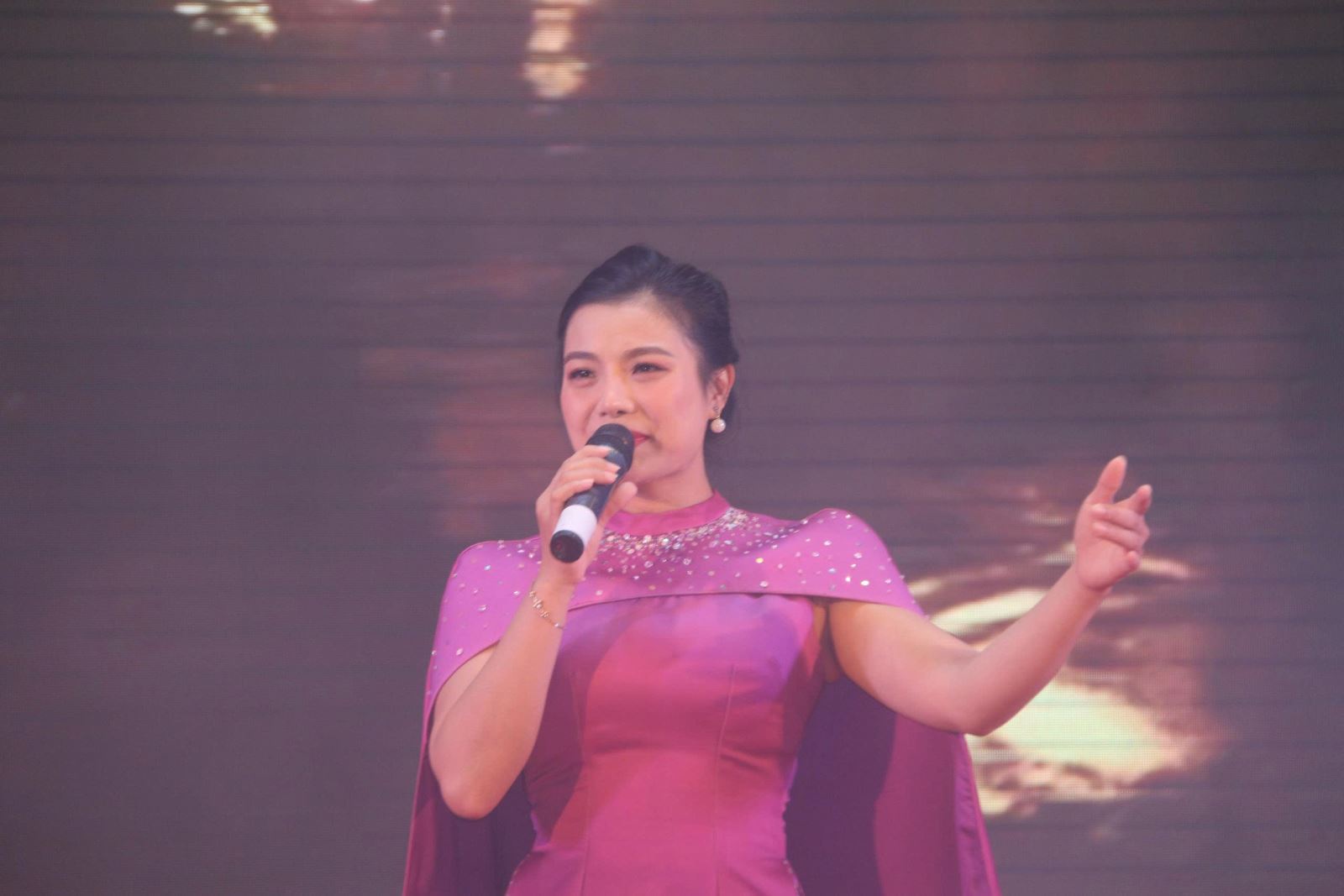 Ca sĩ NSUT Thảo Quyên - Nhà Hát chèo Hà Nội thể hiện ca khúc tại buổi lễ