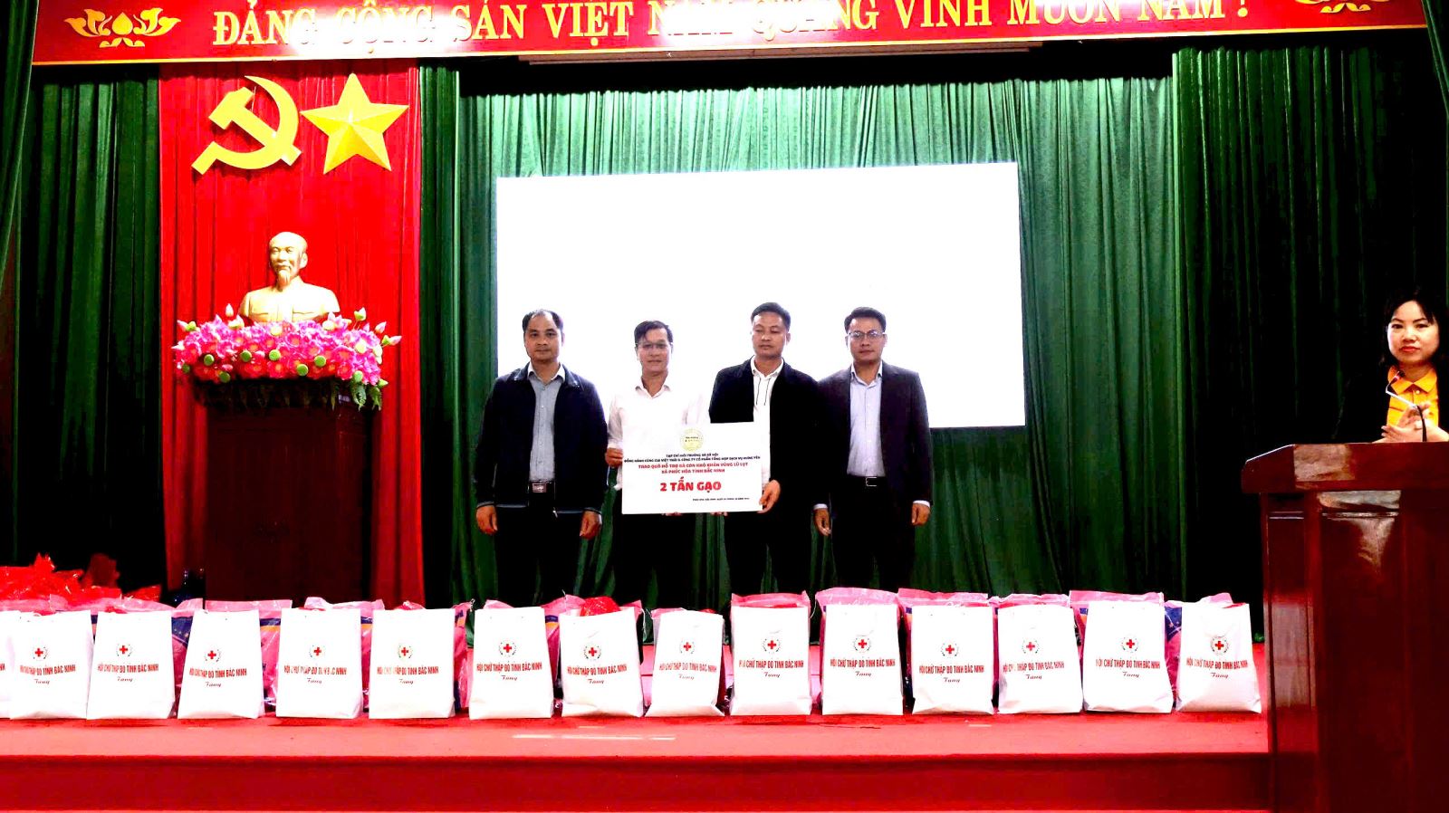 Tại Bắc Ninh, đoàn tiếp tục di chuyển đến hai xã Hoàng Vân và Phúc Hòa để trao quà cho bà con vùng ngập sâu. Những bao gạo trắng tinh được gửi gắm cùng lời chúc ấm áp của các thành viên trong đoàn đã khiến không ít người dân xúc động.