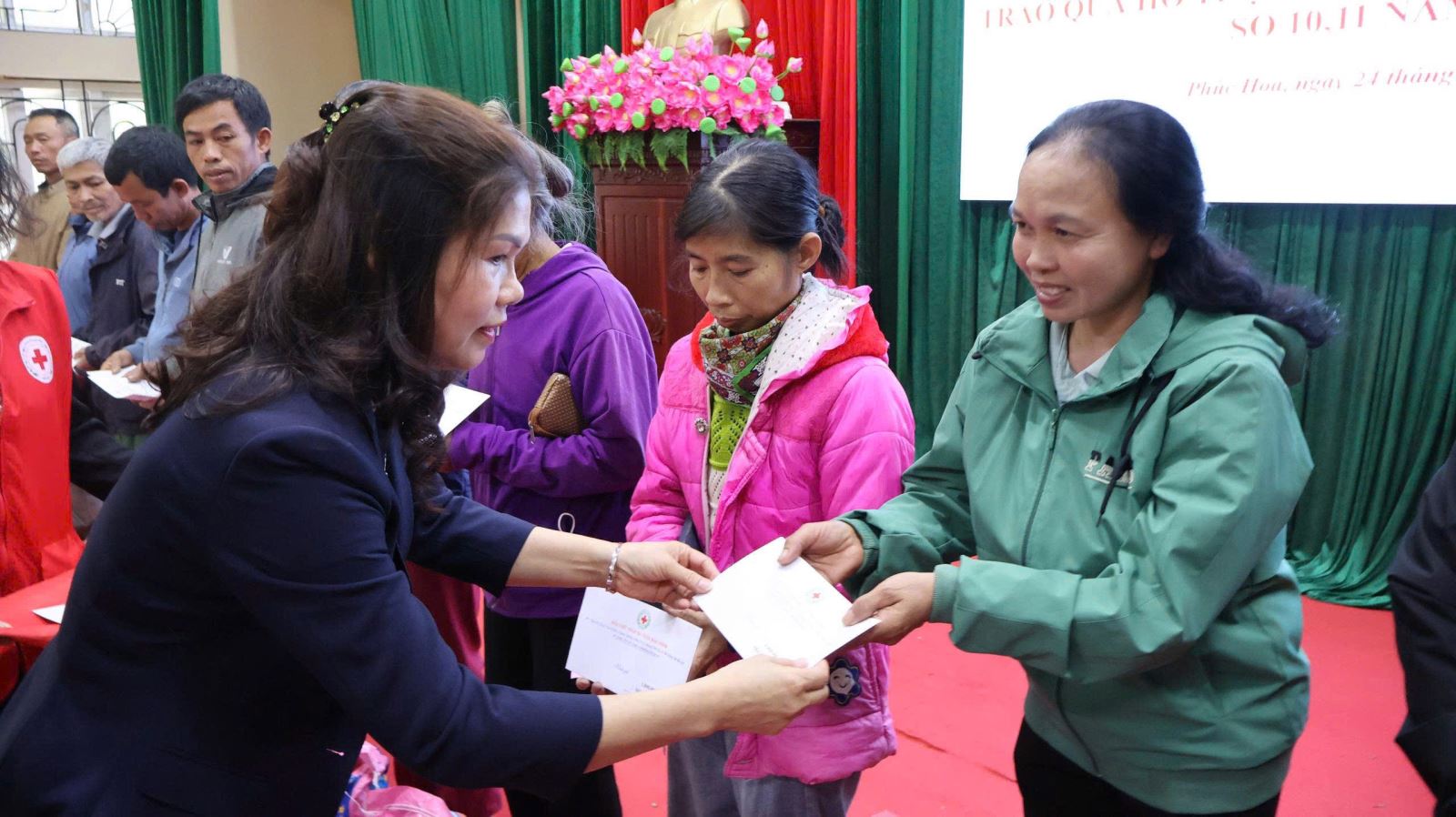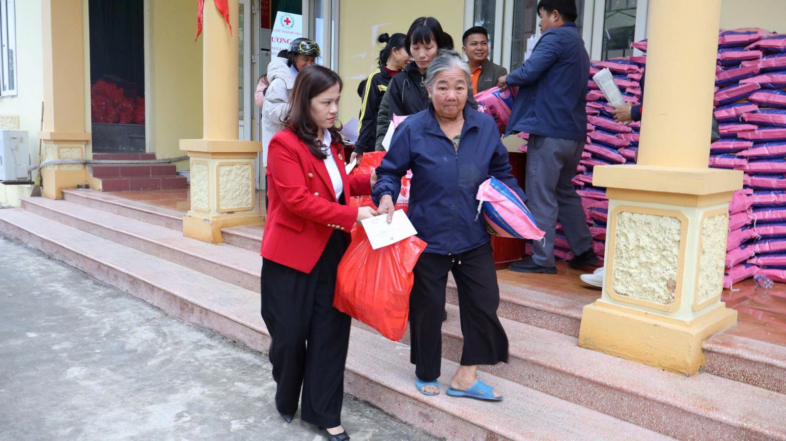 Phó Chủ tịch HĐND tỉnh Lâm Thị Hương Thành trao quà cho người dân bị ảnh hưởng do bão lũ tại xã Phúc Hòa