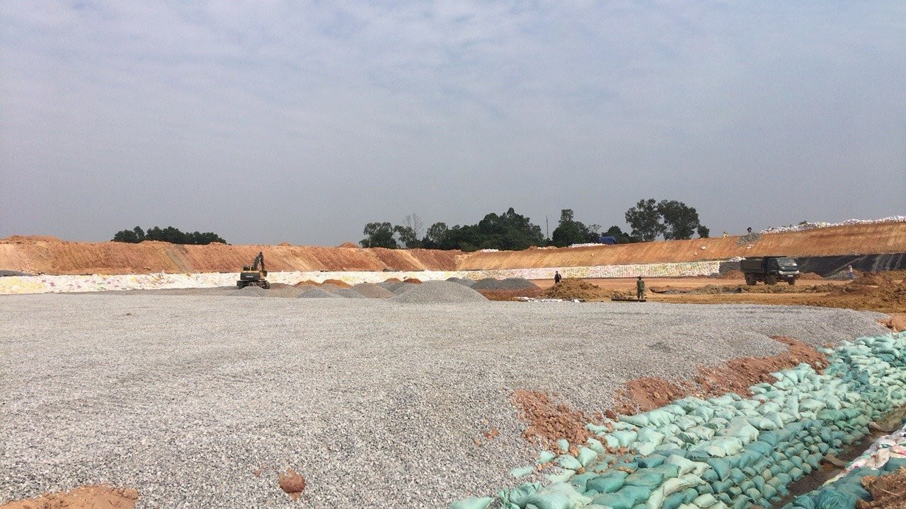 Thi công ô chôn lấp CTR tại là bãi rác Nam Sơn, Hà Nội (Ảnh: Yến Lan)