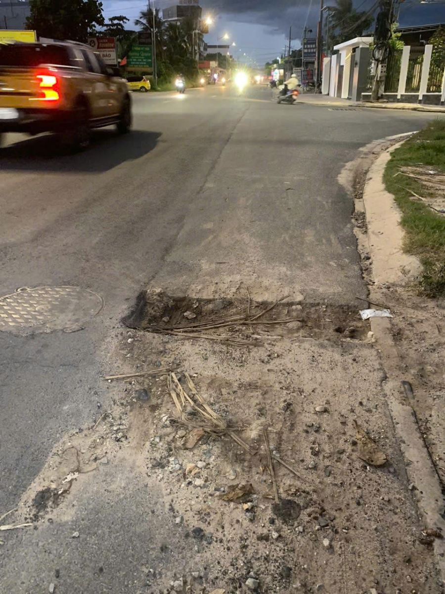 Tại nhiều vị trí, hố sâu và rãnh dài xuất hiện ngay sát mép đường – nơi có lưu lượng xe máy qua lại rất lớn. Các rãnh này có độ sâu đáng kể, mặt đáy lởm chởm đất đá và nước đọng. Vào thời điểm ban đêm hoặc trời mưa, tình trạng trở nên đặc biệt nguy hiểm do tầm nhìn hạn chế và mặt đường trơn trượt.