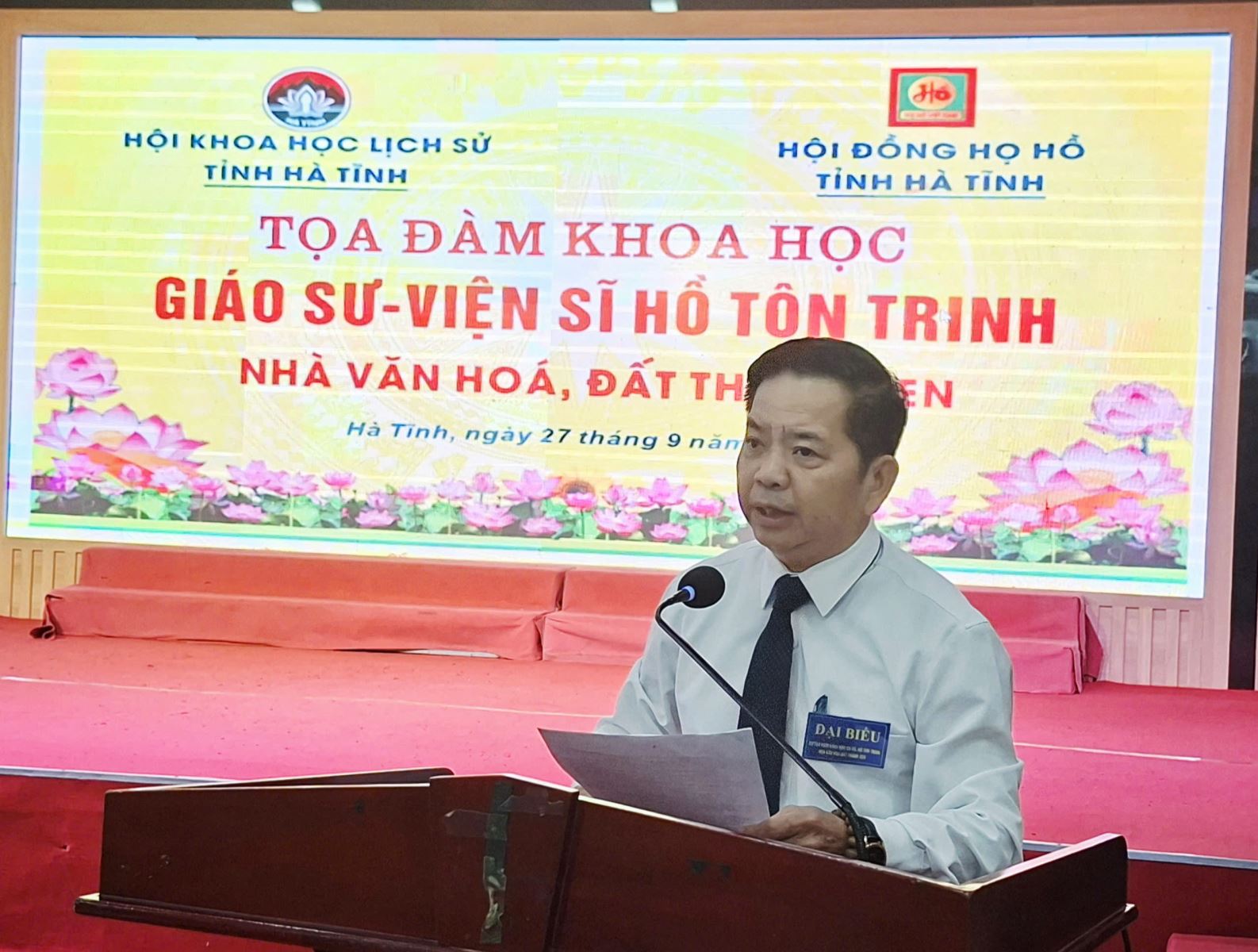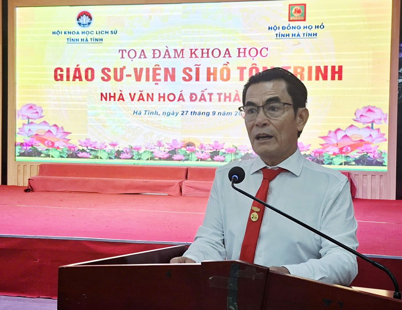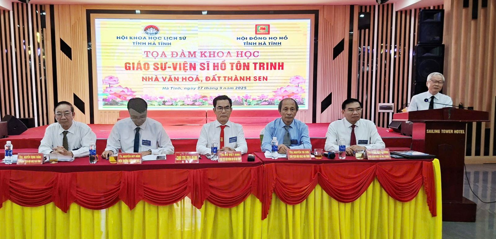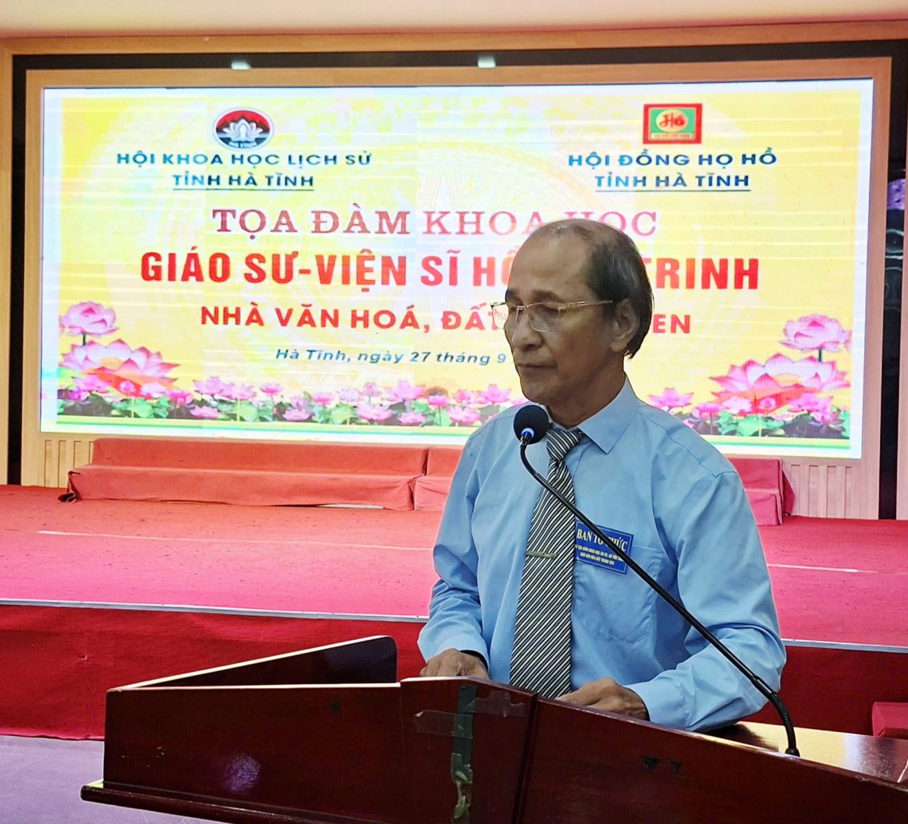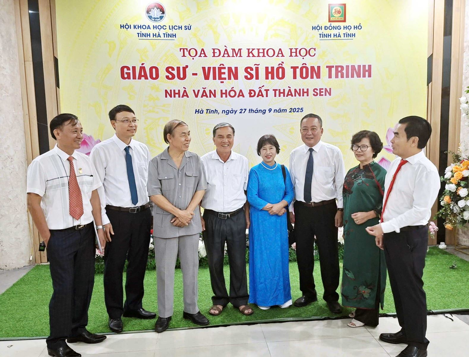 Sáng 27/9/2025, Hội Khoa học Lịch sử tỉnh Hà Tĩnh phối hợp với Hội đồng họ Hồ tỉnh Hà Tĩnh tổ chức tọa đàm khoa học với chủ đề “Giáo sư - Viện sỹ Hồ Tôn Trinh - Nhà văn hóa đất Thành Sen”.